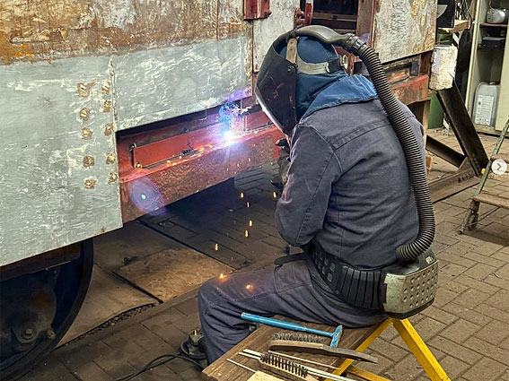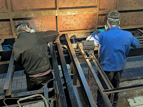 April 2026In der vergangenen Woche hatten wir Besuch von einem Fachbetrieb. Dadurch wurden Stehbolzen in der Feuerbuchse unserer Dampflok nachgeschweißt und Nieten nachgestemmt. Zudem wurden weitere Schweißarbeiten am Rahmen des Triebwagens durchgeführt.