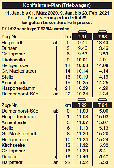 Kohlfahrten - FAHRPLAN 2019 & 2020