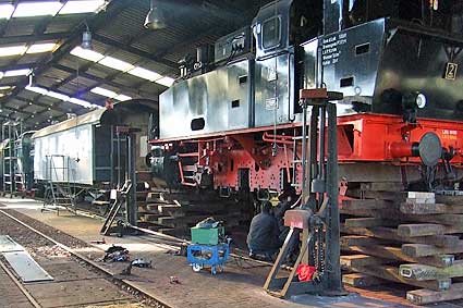 Die Räder sind weg, die Lok aufgebockt: Endlich kann man sich mal ums sonst