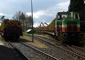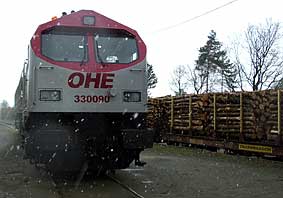Derzeit wurden auf der DHE regelmäßig Holzzüge mit jeweils ca. 1600 Tonnen Bruttogewicht abgefertigt. Die Züge mit jeweils 20 vierachsigen Waggons werden in Delmenhorst von der OHE (Osthannoversche Eisenbahn) übernommen und zum Werk der Zellstoff Stendal Holz GmbH & Co.KG in Arneburg-Niedergörne (Landkreis Stendal) gefahren. Die Züge werden zumeist mit einer der drei OHE Loks vom Typ "Blue Tiger" (2.460 kW) gefahren. Die DHE beabsichtigt Harpstedt als Holzverladebahnhof zu etablieren, um in die Versorgungskette des Zellstoffwerkes integriert zu werden.