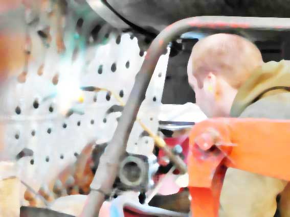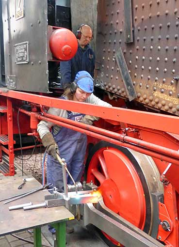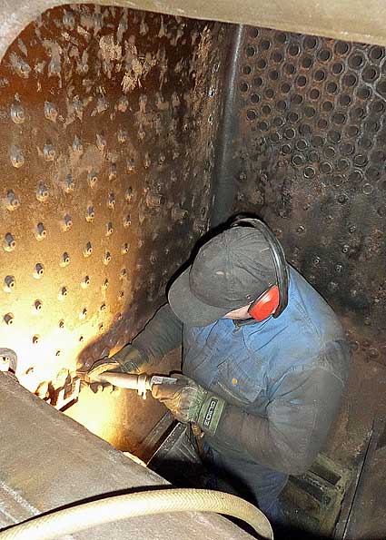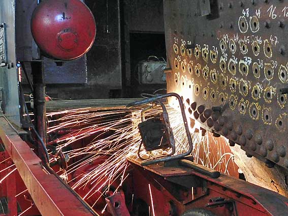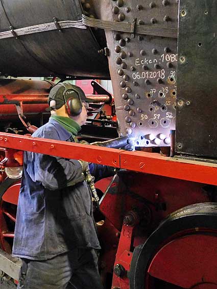 Und so geht's - hoffentlich bald - weiter: Neue Stehbolzen werden mit dem Kessel verschweißt. |