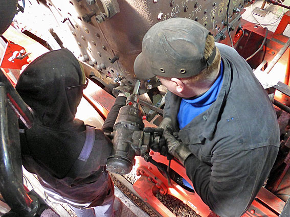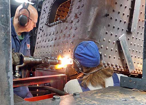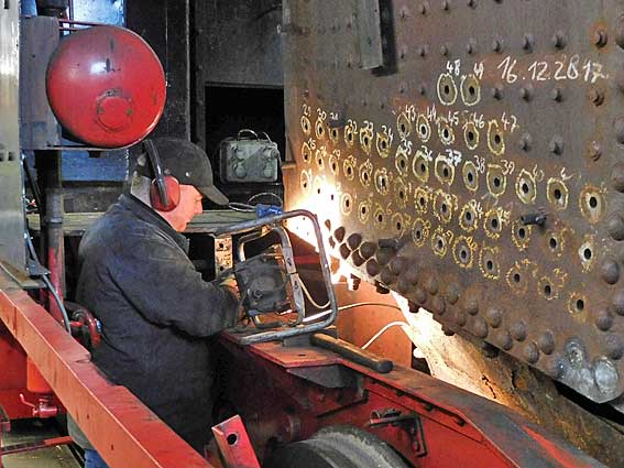 12./13. April 2018: In dieser Woche wurden die Niete am Kessel eingebaut.