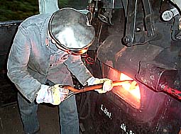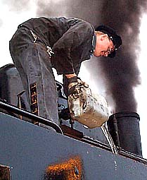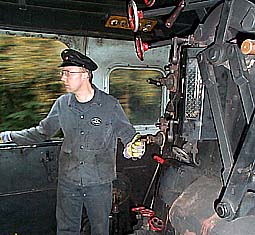 Dem Heizer fällt die verantwortungsvolle Aufgabe zu, das Feuer in Gang und stets den Anforderungen der Strecke entsprechend groß zu halten. Dabei kommt man schon beim Zuschauen ins Schwitzen ... . |