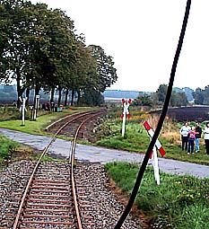 Doch nicht nur heizen muss der Heizer. Zusammen mit dem Lokführer beobachtet er die Strecke. "Frei" - "frei" schallt es mir jetzt noch in den Ohren. Wann immer wir einen ungesicherten Bahnübergang passieren, ertönt dieser Ruf. "Anlage läuft" heißt es dann bei den mit Lichtsignal gesicherten Bahnübergängen. Und jedes Mal ertönt die ohrenbetäubende Dampfpfeife. Hörprobe gewünscht? Klicken Sie mal hier! |